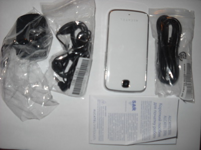 Мобильный телефон Alcatel OT 20.10D поставляется в очень компактной белой коробке из тонкого картона. Похоже на материале упаковки производитель заметно сэкономил. Уж очень тонкий картон тут используется, хотя внешне бокс смотрится достаточно привлекательно. На коробке изображен сам телефон и предлагается некоторая текстовая информация. Радует, что данные тут представлены на русском языке. В коробке вы найдете сам мобильник, небольшой литий-ионный аккумулятор к нему, зарядное устройство с портом USB, кабель USB/microUSB, гарнитуру, компактное руководство по эксплуатации и гарантийный талон. Каждый элемент упакован в отдельном полиэтиленовом пакетике и аккуратно уложен внутри коробки. Телефон был изготовлен в Китае, что не удивляет. Данные о месте производства указаны на коробке и наклейке внутри мобильника.