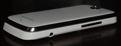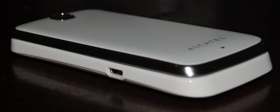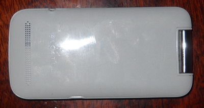 На лицевой панели телефона располагаются лишь камера, светодиодный индикатор (светится при зарядке и подключении к компьютеру) и надпись "Alcatel", а на тыльной – внешний динамик и еще одна надпись "Alcatel". На левой боковой панели размещен порт microUSB, а на правой установлены разъем для подключения наушников (или гарнитуры) и качелька регулятора громкости. Если открыть телефон, то на верхней панели изнутри размещены разговорный динамик и дисплей, а на нижней – блок цифро-буквенной клавиатуры, вспомогательные кнопки и микрофон (расположен у кнопки "8").