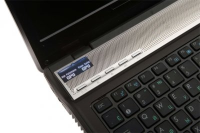 Ще однією цікавою деталлю є срібляста пластикова вставка над клавіатурою. Більша її частина покрита дрібною перфорацією. Під нею знаходиться вбудована аудіо система, яка носить назву ASUS SonicMaster і включає в себе два 20-мм стерео динаміки Altec Lansing і 2,5-ватний підсилювач розміром 21 куб. см.