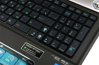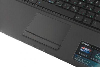 Пристрій введення представляє собою chicklet-клавіатуру і дуже схоже на ті, що використовуються в ноутбуках Apple і Sony. Всі 102 матові клавіші закріплені на глянсовому підставі. Розмір основних кнопок дорівнює 15х15 мм, невеликі габарити компенсуються відстанню, витриманому між клавішами, і набір тексту стає практично безпомилковим - палець не потрапляє по розташованих поруч клавішах. Розкладка повністю стандартна, ніяких сюрпризів, всі клавіші саме там, де і звикли намацувати їх пальці. Роздільне нанесення російської та латинського алфавітів, як завжди в стилі ASUS - білими і зеленими квітами. Розмір діагоналі матриці дозволив доповнити основний клавішний масив повноцінним цифровим блоком, єдиний недолік якого - це більш вузькі клавіші (15х12 мм), ніж в основних кнопок. У цілому працювати з клавіатурою зручно, клавіші мають гарний хід, натискаються легко. Підстава пристрої введення помітно прогинається в своїй правій частині, перший час це відволікає, але потім звикаєш.