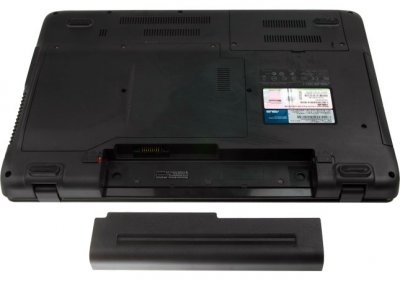 На підставі ноутбука є три спеціальні відсіку. У першому знаходиться жорсткий диск, у другому - оперативна пам'ять, адаптер Wi-Fi і система охолодження, ну а в третьому розташований акумулятор, який фіксується дуже жорстко, без будь-якого люфту.