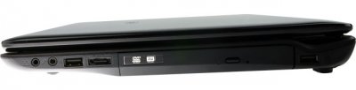 На правій стороні знаходиться - 3 USB (один суміщений з eSATA), два стандартних роз'єма для підключення навушників і мікрофону, а так само привід оптичних дисків.