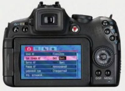 «Горячий башмак» предназначен для установки системных вспышек Speedlite EX. Для большинства случаев будет вполне достаточно встроенной вспышки. Ее управление сводится к коррекции мощности импульса и задания режима синхронизации — медленная, по началу и окончанию экспозиции.