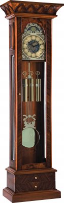 В спектре напольных часов модель HERMLE 01213-031161 обращает на себя внимание элегантностью линий и строгостью дизайна. Модель классическая, цвета ореха, стилизованная под античную колонну, включает в себя элементы из цветного металла и хрусталя.