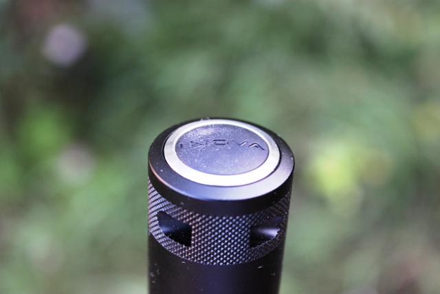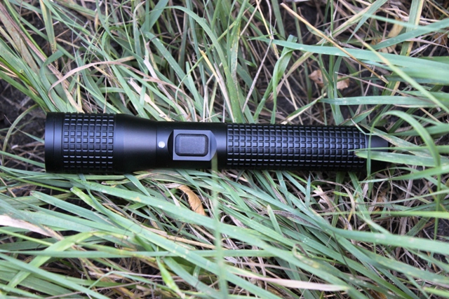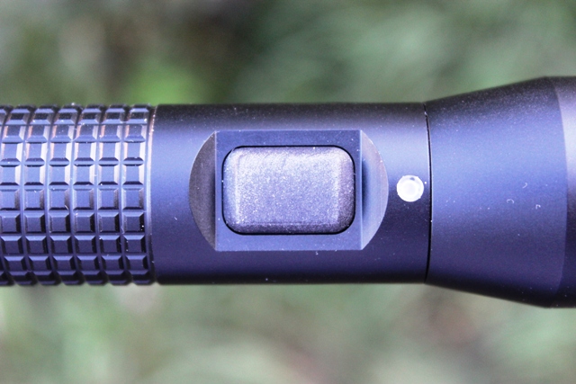 Обрезиненная кнопка управления фонарем расположена в хвостовой части рукоятки. Она обеспечивает три режима работы: максимальная яркость с мощностью 100%, минимальная яркость с мощностью 10% и стробоскопический режим. Отверстие для крепления наручного ремешка также находится в хвостовой части фонаря.