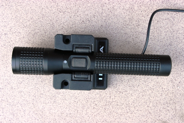 Подключение зарядного устройства к фонарю исполнено в виде базового блока с двумя контактными площадками. Ответные части контактов располагаются на корпусе фонаря, противоположно кнопке управления. Базовый блок имеет провод со штекером, исключающим переполюсовку, при помощи которого он подключается к зарядным устройствам, входящим в комплект.