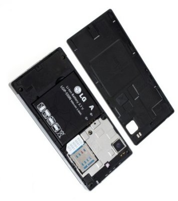 Держать телефон в руке – одно удовольствие. Задняя панель GD880 Mini полностью выполнена из матового пластика черного цвета с применением каучукового покрытия Soft Touch, благодаря которому телефон надежно фиксируется в руке. Вся тыльная поверхность представляет собой крышку аккумуляторного отсека. Здесь имеется всего одно отверстие под глазок 5-мегапиксельной камеры с автофокусом. После непосредственного снятия крышки, наблюдается довольно забавная картина. Дело в том, что размещение элементов под крышкой лишено эстетики. Все это сделано в угоду стильному минимализму. По сути, все разделено на две части. Сверху находится аппаратная начинка и слот для SIM-карты, а внизу – довольно емкий литий - ионный аккумулятор. Его заряда хватает как минимум на пару дней при средней загрузке (50 мин разговоров в день, 2-3 часа прослушивания музыки и 1 час серфинга во всемирной паутине).