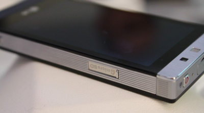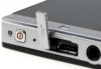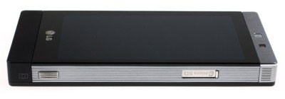 На противоположном торце находится клавиша запуска камеры, по совместительству осуществляющая спуск затвора. Она также имеет четкий ход и фиксацию, правда нажимается она слегка мягковато. Кроме этого на правом торце можно заметить заглушку слота карт памяти MicroSD HC. Посадка карты в слоте осуществляется слишком глубоко, поэтому мужской части населения придется прибегнуть к подручным средствам (для этих целей вполне подойдет крышка аккумуляторного отсека). В верхнем торце расположена клавиша питания/блокировки (аналогичная решениям на Windows Mobile). Рядом с ней можно заметить миниатюрное отверстие микрофона, благодаря которому во время разговора осуществляется активное шумоподавление. Приятным дополнением станет наличие стандартного 3.5 миллиметрового разъема для наушников, лишенного сомнительных заглушек. Еще одна деталь – разъем MicroUSB, эффектно прикрытый откидной заглушкой. Как видим, верхний торец аппарата переполнен функциональными элементами.