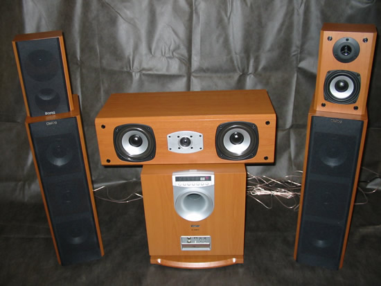 Также в состав акустической системы входят 2 фронтальные колонки. Эти сателлиты имеют трехполосную структуру и по звуковым характеристикам схожи с центральной колонкой. Диаметры динамиков составляют 102мм, 38мм, 102мм, а максимальная мощность 50Вт. Что касается тыловых колонок, то они имеют несколько иные параметры. Во-первых, они имеют двухполосную систему, которая состоит из двух динамиков с диаметрами 102мм и 38мм. Во-вторых, мощность тыловых сателлитов составляет 30Вт. Сабвуфер имеет встроенный усилитель, процессор, и динамик диаметром 203,2 мм. Мощность сабвуфера составляет 100 Вт.