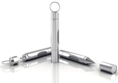 Устройство представляет собой красивое инновационное устройство, которые выглядит круто и заставит владельца чувствовать себя адептом среди однообразия. Эта чудо ручка U Drive Memory Pen имеет встроенную память и несколько датчиков, которые отслеживают перемещение. Каждый датчик формирует информацию, которая записывается в память, это может быть рукописный текст, наброски изображений. Таким образом, хранимая информация может быть доступна для переноса на компьютер, так как в задней части ручки расположен USB. Вам не понадобится бумага для записи своих заметок, использовать можно любую находящуюся поверхность (руку, стол, бумага и т.д.). Извлечённые данные легко обрабатываются с помощью ПК, доступны несколько функций обработки. Разве это не гениальное изобретение. В любой момент, куда бы вы не ехали, когда приходит вдохновение записывать свои идеи, например, набросать эскиз, а потом уже с помощью компьютера его обработать. Вся конструкция выполнена из метала. Дизайнерская работа от Wang Xuelei.
