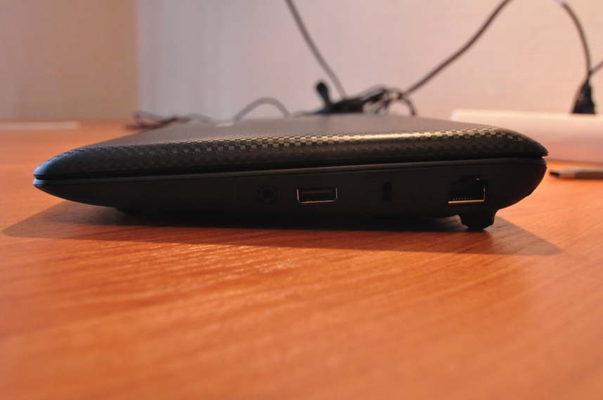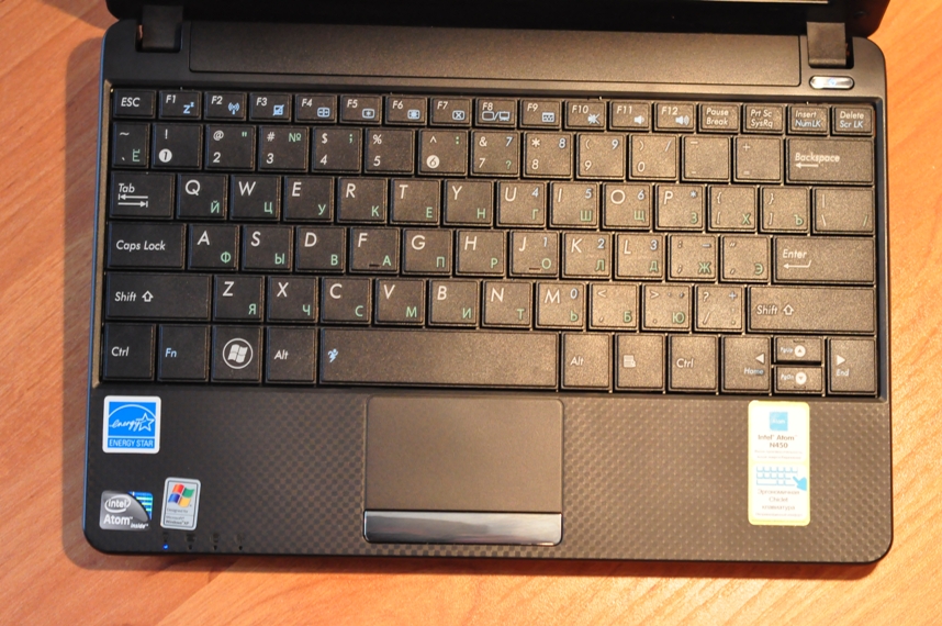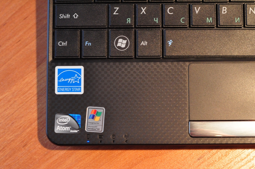 Нетбук собран из крепкого пластика с текстурой карбона и, внимание, абсолютно не глянцевого. Вы не поверите, но на гаджете нет ни одной глянцевой детали (за исключением кнопки тачпада, сделанную под хром и кнопки включения/выключения сделанную под него же).