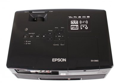 Оформлений "комбайн" Epson EH - DM3 традиційно. Дизайн тут задається функціональністю - в одному корпусі необхідно розмістити не лише проекційну систему, але також два динаміки і DVD -привод. При цьому нехитрої форми корпус фанерований чорним глянсовим пластиком, що одночасно надає трохи шику комбайну і залишає простір для регулярного прибирання - природно, глянець чудово збирає пил і відбитки пальців. Але і виглядає привабливіше того ж TWD10.Оформлений "комбайн" Epson EH - DM3 традиційно. Дизайн тут задається функціональністю - в одному корпусі необхідно розмістити не лише проекційну систему, але також два динаміки і DVD -привод. При цьому нехитрої форми корпус фанерований чорним глянсовим пластиком, що одночасно надає трохи шику комбайну і залишає простір для регулярного прибирання - природно, глянець чудово збирає пил і відбитки пальців. Але і виглядає привабливіше того ж TWD10.