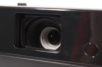 На лицьовій панелі ми бачимо об'єктив, що прикривається шторкою зрушення, щілину оптичного приводу з кнопкою і індикатором роботи, а також Іч-датчик для прийому сигналу з пульта ДУ.
