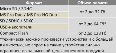 Еще одна “головная боль” пользователей - это многообразие форматов карт памяти, которое приходится иметь в виду при выборе фотоаппарата, телефона, ноутбука, кардридера, а в последнее время и телевизора и медиаплеера. На данном этапе развития наблюдается «тихая» победа форматов SD и microSD, которые за последнее время стали универсальным стандартом для большинства производителей. Именно от производителей устройств, поддерживающих флэш-носители, зависит создание и необходимость универсального формата. Что нас ждет в будущем – покажет время, новые устройства, появляющиеся на рынке, и увеличивающийся спрос на петабайты доступного пространства. На сегодняшний день, технологически для каждого из существующих форматов есть предел емкости, т.е. чем больше форм-фактор карты, тем больше можно расположить там флеш памяти и соединить с более быстрым контроллером (в частности, это необходимо для высокопрофессиональных зеркальных фотоаппаратов).