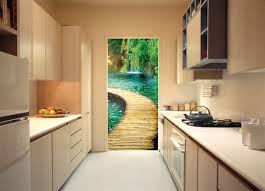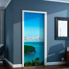 Большой популярностью также пользуются фотообои для дверей. Виды морского побережья или дорожек, уводящих на веранду, имеют специальный формат, который подойдет для любой двери.