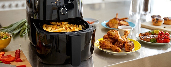 Аэрогриль готовит при высокой температуре, обдувая горячим воздухом. Жареная картошка получается мягкой в середине и с хрустящей корочкой.