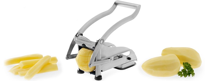 - с помощью приспособлений для нарезки, легко разрежете клубни на одинаковые крупные или тоненькие кусочки.