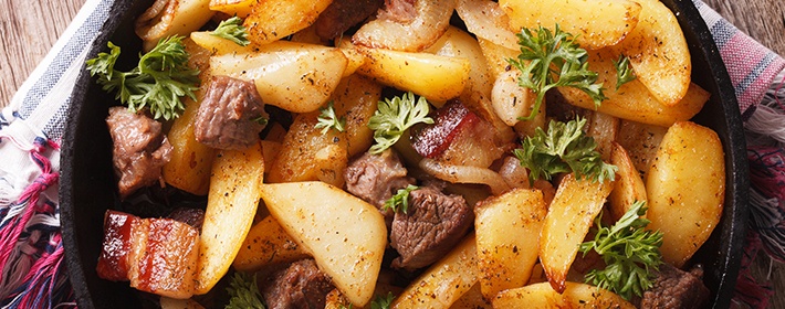 Как пожарить картошку с мясом или салом