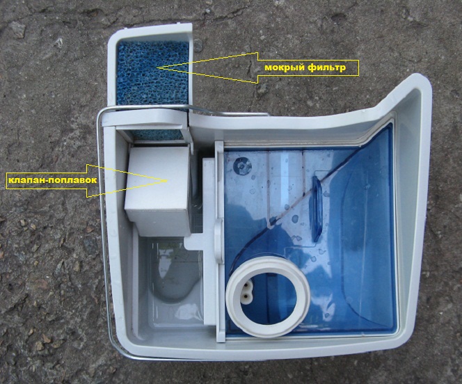 Внешний вид аквафильтра, установленного в емкости для сбора грязной воды, можно посмотреть на фото ниже.