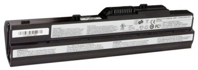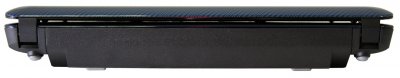 На тильній стороні - відсік для акумулятора. Поверхня батареї, як і підставка, - з м'якого шорсткого пластика. 6-осередковий акумулятор явно видається за межі корпусу, при цьому задні гумові ніжки піднімаються над поверхнею, а їхню функцію виконують дублери, спеціально для цього передбачені в конструкції акумулятора.