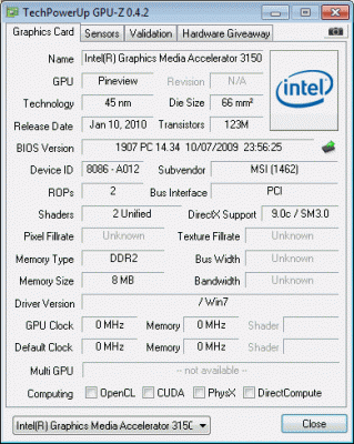 Вбудоване в процесор відеоядро Intel GMA 3150 має лише два піксельних процесора, а частота ядра складає всього 200 МГц. А фактично, GMA 3100 навряд чи краще старенького GMA 950.