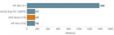 Нижче приведені результати тестів-порівнянь Wind U135 і представлених вище трьох нетбуков: