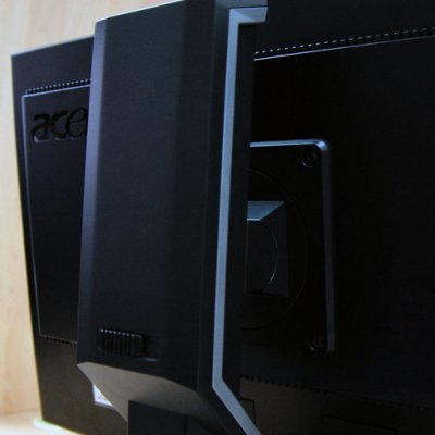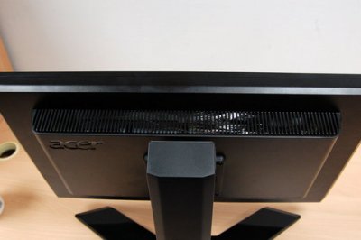 Крім дисплея, несподівано для монітора службовця і керуючим елементом, в тому числі, на лицьовій панелі, ближче до її нижній кромці, розташовані кнопки E (фірмова і обов'язкова Empowering technology від Acer - зустрічалася нами не раз, наприклад на проекторі Acer S1200 і телевізорі Acer AT2355), що служить для швидкого налаштування яскравості зображення за допомогою однієї з п'яти предустановок (User, Text, Standard, Graphics, Movie), Auto (автоматична підстроювання картинки), Menu, дві стрілки і кнопка включення з блакитним що світиться індикатором.