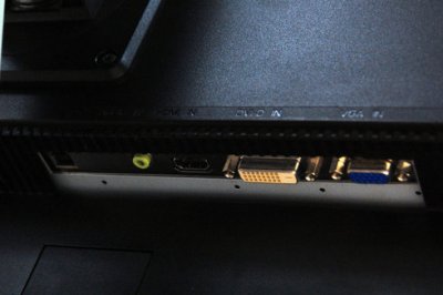 Тепер про іншу, не менш важливою характеристикою. Бортових інтерфейсах. Їх тут достатньо: VGA (D-Sub), DVI (з підтримкою HDCP), HDMI. Також в наявності 3,5-мм роз'єм для навушників, USB-роз'єм (для чого - розповімо нижче) і, звичайно, роз'єм живлення. Всі вони зосереджені на нижній кромці того ж самого блоку з динаміками, до якого кріпиться кронштейн. Доступ до інтерфейсів досить складний, але і T230H - не РК-телевізор, щоб все було просто. У принципі, такі монітори підключаються один раз і якщо не назавжди, то надовго. Розміри монітора не припускають використання його в якості портативного пристрою.