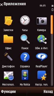Меню телефона напоминает Nokia 5800.