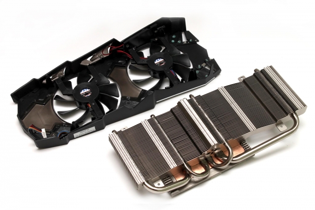 Тепловые трубки служат для равномерного распределения тепла по всей площади радиатора. Графический процессор напрямую контактирует с испарительной камерой, в то время как микросхемы памяти контактируют с ней через алюминиевую пластину.