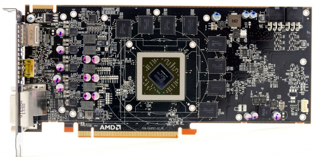 На печатной плате видеокарты присутствует один разъем Cross Fire X для объединения в массив двух видеокарт.
