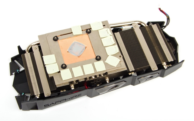 Вместо стандартной модели Radeon R9 280X от AMD на тестировании была видеокарта от SAPPHIRE. На видеокарте SAPPHIRE Radeon R9 280X система охлаждения турбинного типа была заменена системой охлаждения собственной разработки. Для охлаждения графического процессора используется радиатор с испарительной камерой в основании и тепловыми трубками.