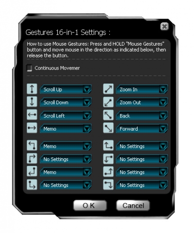 В программе присутствует очень интересная опция – Mouse Gestures, благодаря которой мы можем настроить 16 функций, которые будут выполняться при нажатии на выбранную клавишу (либо при соответствующем движении мышкой). Данное дополнение значительно облегчает ежедневную работу.