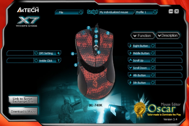 В компании A4Tech позаботились о том, чтобы пользователи получили пакет программного обеспечения, который облегчит работу с устройством даже самым требовательным из них. Для этого был разработан функциональный центр управления устройством, который называется X7 Oscar Editor.