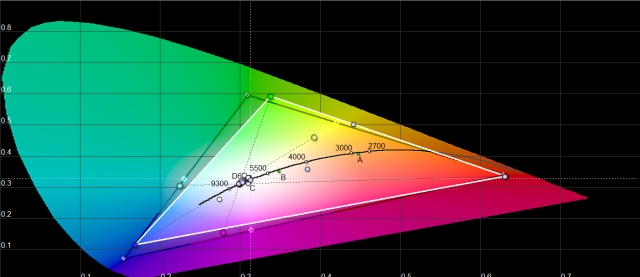 Между сенсором устройства и стеклом нет воздушной прослойки, поэтому изображение на дисплее Alcatel One Touch Scribe HD выглядит реалистичным. Цветовой охват экрана смартфона немного не дотягивает до стандарта sRGB.
