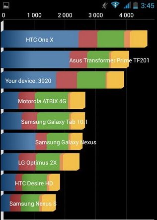 В тесте производительности AnTuTu аппарат набрал 12 565 баллов, заняв место в рейтинге между ASUS Google Nexus 7 и ASUS Eee Pad Transformer Prime TF201.