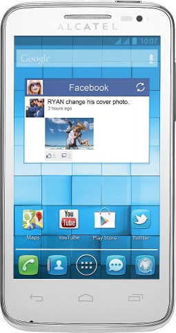 Alcatel OT M'Pop 5020D обладает 4-дюймовым MultiTouch дисплеем с TFT-матрицей. Разрешение экрана составляет 800х480 точек. Яркость экрана хорошая. Конечно, на очень ярком солнце блеклости никак не избежать, и читать с экрана становится не очень комфортно. Углы обзора большие, что позволяет просматривать информацию со смартфона нескольким пользователям одновременно. Дисплей передает цвета достаточно естественно, искажения в цветопередаче не бросаются в глаза.