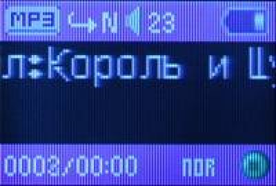 На фронтальной поверхности расположен 1,1 дюймовый СSTN дисплей. Его размеры 20х14 мм. Экран простой и дешевый, по сравнению с TFT дисплеем он имеет меньшее энергопотребление, но при этом имеет небольшие углы обзора, отображает меньше цветов и имеет более высокое время отклика. Да и на солнце он почти не читаем, придется прикрывать рукой. С другой стороны плеер не предназначен для просмотра видео, а текст можно прочитать и на таком дисплее. На нем помещается 12 букв или цифр по ширине, а по высоте – три строки.