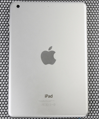 В левом верхнем углу задней панели планшета располагается объектив основной камеры. Практически посередине верхней части тыльной панели на пластиковой вставке находится небольшое отверстие микрофона. По центру «спинки» планшета разработчики поместили большой логотип компании (надкусанное яблоко). В самом низу задней панели можно прочитать название устройства и краткую техническую характеристику.