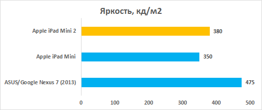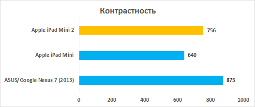 Экран устройства имеет высокий коэффициент контрастности 900:1. У предыдущей «яблочной» модели он составляет 687:1, а у Asus Google Nexus 7 (2013) – 875:1.