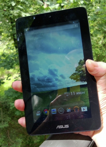 Дисплей планшета построен на обычной TN-матрице, а не на матрице IPS, которая установлена, например, у Asus MeMO Pad HD 7 или у Asus FonePad ME371MG-1I030A. При взгляде прямо на экран кажется, будто в ASUS MeMO Pad используется IPS-матрица. Если же посмотреть на него под углом, сразу станет видно, что дисплей построен на менее качественной TN-матрице. Изображение на экране планшета либо затемняется, либо выцветает в зависимости от угла обзора.