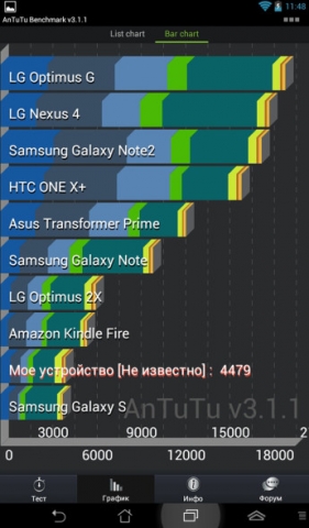 В синтетическом тесте AnTuTu Benchmark планшет набирает всего лишь 4479 баллов.
