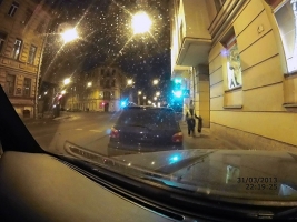 Качество ночной съемки намного скромнее, чем дневной. К слову, автоматическая настройка светочувствительности работает превосходно, т.к. переключение в меню пункта «ISО» с «авто» на «800» практически не дает никакого визуального эффекта. Претензий к съемке две: низкая резкость изображения и плохая цветопередача – весь видеоряд имеет какие-то желто-зеленые оттенки. И если с последним фактором еще как-то можно смириться, то с первым вряд ли, т.к. он может напрямую повлиять на выполнение устройством его прямой функции – четкой фиксации дорожной обстановки. Таким образом, оценивать качество видеосъемки «DVR-905S» имеет смысл только по отдельности – для светлого времени суток и для темного. По пятибалльной шкале дневная съемка вполне заслуживает твердой четверки, а учитывая широкий угол обзора – даже четверки с большим плюсом. А ночью – это, к сожалению, среднестатистический видеорегистратор, который не выделяется ничем интересным (кроме широкоугольного объектива) среди огромной массы середнячков. Но опять-таки - не выделяется ни в хорошую сторону, ни в плохую.