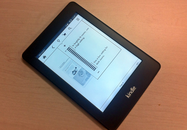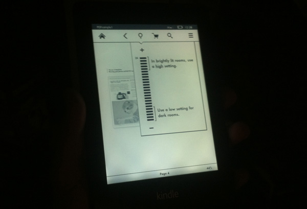 Но нужно признать, что основной новой функцией Amazon Kindle Paperwhite, на которую обратят внимание покупатели, будет именно подсветка, а не улучшенное разрешение. Четыре светодиода, расположенных внизу устройства, освещают нанопленку, равномерно рассеивающую свет по всему экрану. Это успешно помогает вам читать в темноте, не особо напрягая зрение. Однако стоит заметить, что рассеивание не совсем равномерно. Четко видно, что наибольшая концентрация света сосредоточена внизу экрана. А еще подсветка имеет слегка голубоватый оттенок. Интенсивностью подсветки можно управлять и даже выключить ее совсем, если в ней нет необходимости.