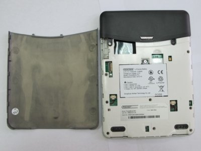 На тыльной стороне находится только крышка аккумуляторного отсека. Под ней кроме аккумулятора ничего нет, поэтому отсутствует и надобность ее открывать.