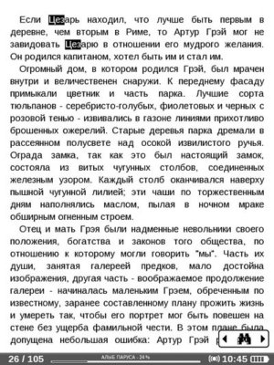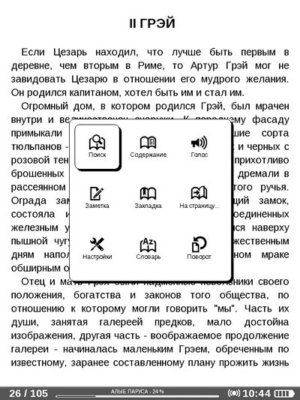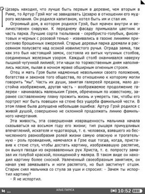 В целом, навигация по библиотеке мне показалась не удобной. Например, в «Библиотеке» не лишней была бы категория для последних открытых книг, или категория «Авторы». Еще не хватает способов сортировки (все автоматически сортируется по названию файла). Короче говоря, недоработок много. Надеюсь, в следующих версиях прошивки все недочеты будут исправлены.