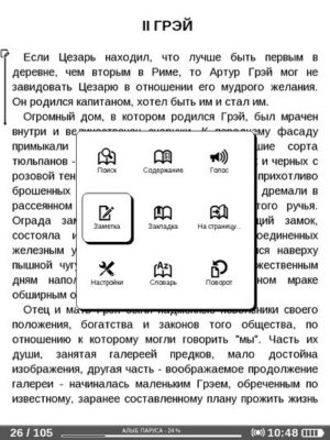 «Заметка» С помощью джойстика выделяется интересующий вас текст, который и будет заметкой. Внутри книги все заметки помечаются. Заметки могут быть текстовыми или с картинкой, если в выделенный для заметки текст попало изображение.
