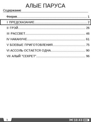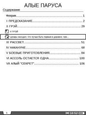 Чтобы вернутся к содержанию книги, необходимо нажать клавишу «Меню». Кстати в содержании отображаются также и все заметки и закладки, что, на мой взгляд, не очень удобно. Намного лучше было бы сделать для них отдельное меню, как в предыдущих моделях PocketBook.