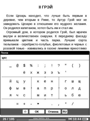 «Поиск» На экран выводится клавиатура, с помощью джойстика вводим искомое слово. Джойстиком осуществляется и переход между найденными словами в тексте.