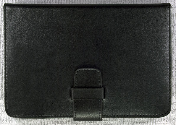 Обложка изготовлена из черного кожзаменителя. С внутренней стороны покрыта «бархатной» тканью, тоже черной. Книга закрепляется на своем месте при помощи резинок и одного зажима. Застежка обложки представляет собой хлястик, который заправляется в специальную петлю. На наш взгляд, решения с магнитной защелкой более удобны в эксплуатации. Кроме того, чтобы воспользоваться кнопкой Reset, придется сдвинуть одну из резинок в сторону.